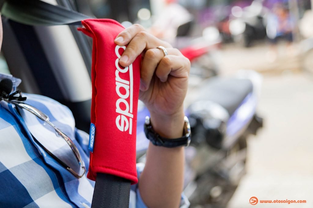 Ngoài bọc vô-lăng các bác có thể gắn thêm 2 cái bọc đai an toàn của Sparco luôn. Bọc đai an toàn sẽ giúp các bác cảm thấy thoải mái ở phần vai, nơi tiếp xúc giữa dây đai an toàn và thân thể của mình hay người ngồi bên cạnh. Bọc đai sẽ giúp không bị đau do cọ xát lâu và không để lại vết lằn trên thân thể.